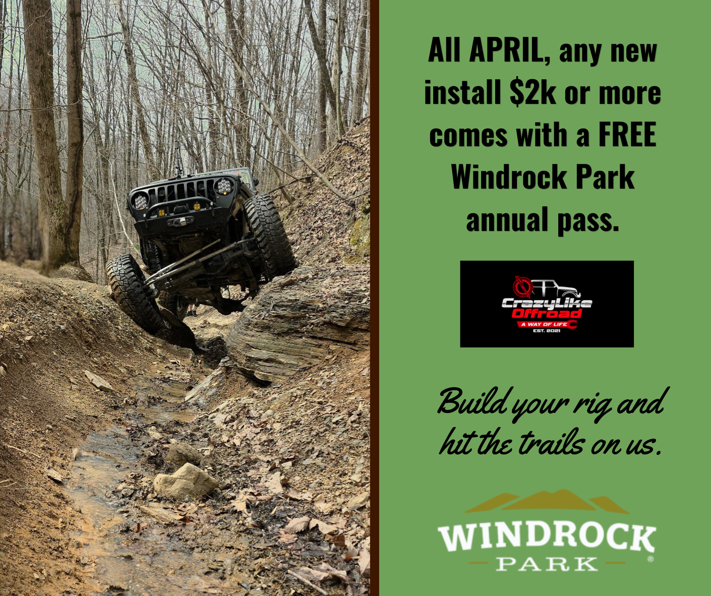 Out on the trail, we offer guided trail rides in the Southeast, instructional sessions, event planning, and more. Personalized offroad adventures and custom Jeep builds are at the heart of what we do.